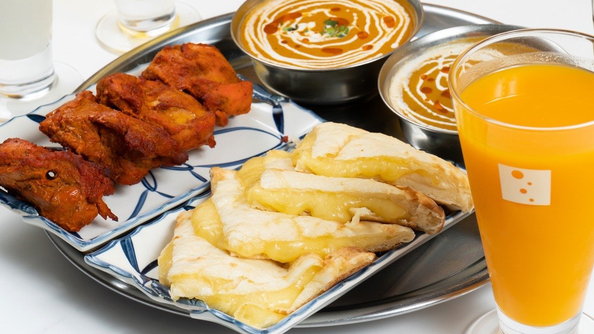 カレーとナン、サラダ、チキンなどのお得なセットです。