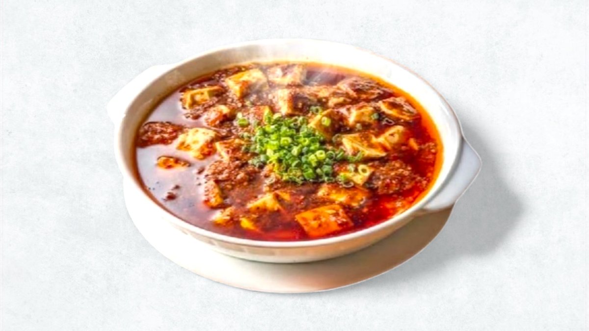 ご飯の上にたっぷりとかかった本格麻婆豆腐が食欲を刺激する、ボリューム満点の丼ぶりです。 A satisfying bowl of rice topped with a generous portion of spicy and authentic Mapo Tofu.
