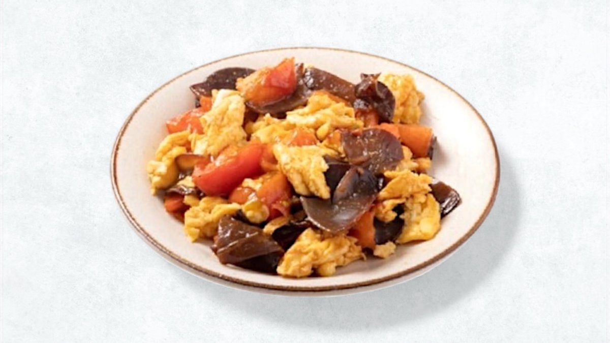 ふんわり玉子ときくらげのコリコリ食感が楽しい、豚肉の旨味が染み出した優しい味わいの一品です。 A gentle dish featuring fluffy eggs, crunchy wood ear mushrooms, and savory pork.