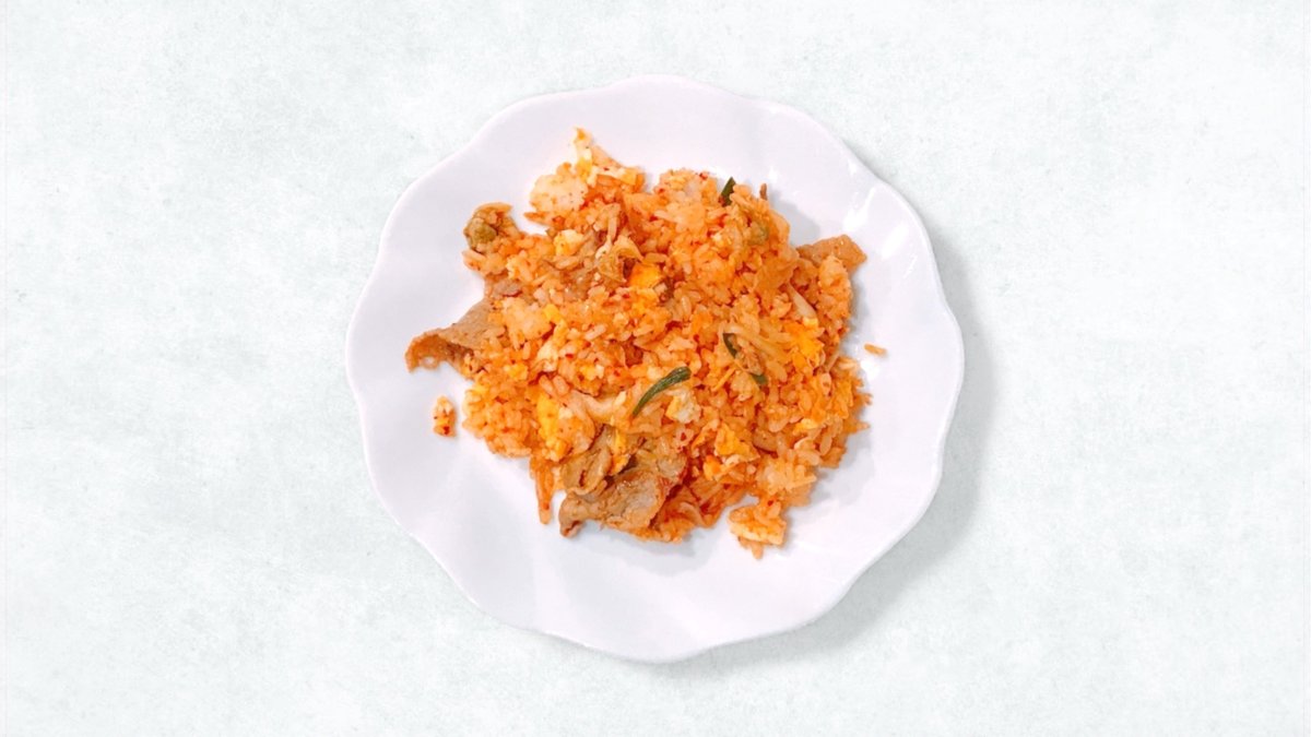 程よい酸味と辛味が特徴のキムチを使用した炒飯です。食欲をそそるピリ辛な味わいが魅力です。 Fried rice using kimchi characterized by moderate acidity and spice. The appetizing spicy taste is appealing.