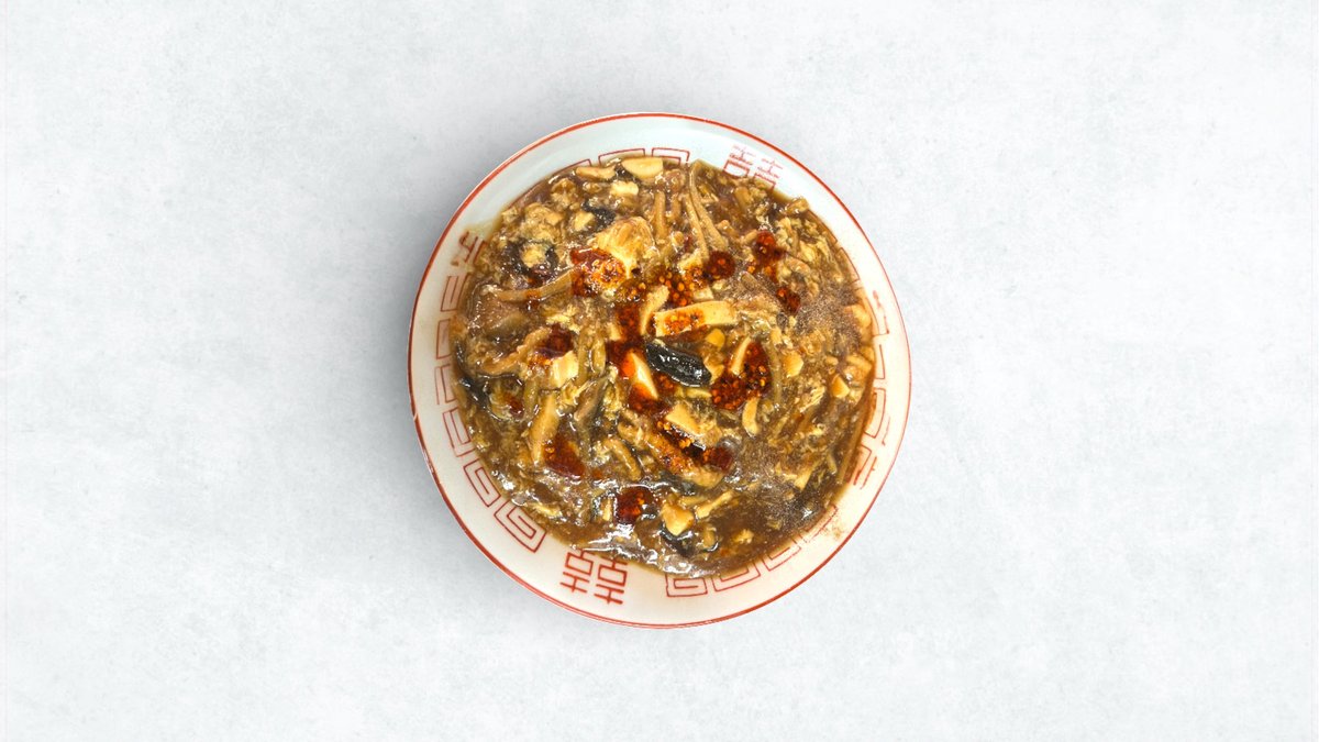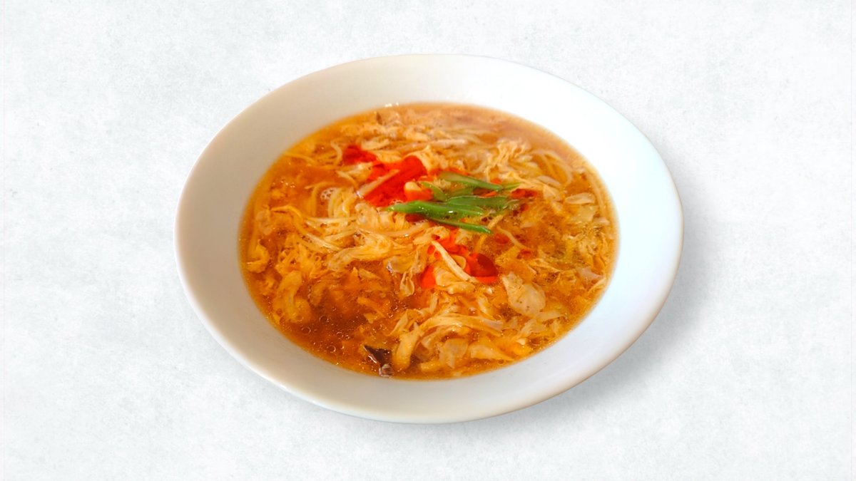酸味の効いたスープにラー油の辛味がアクセントの酸辣湯麺です。とろみスープが麺によく絡みます。 Hot and sour noodles with sour soup accented by the heat of chili oil. The thick soup coats the noodles well.