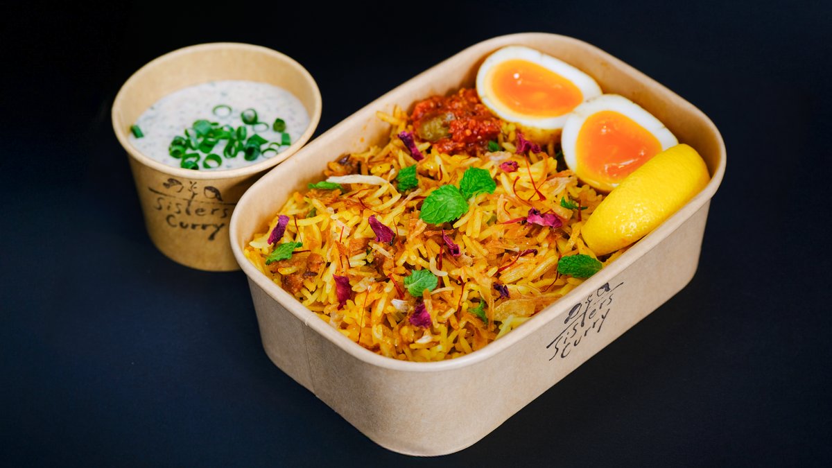 ハイデラバード風チキンビリヤニ スパイスとヨーグルトでマリネしたチキンを、バスマティライス、ハーブ、サフランなどと重ねて丁寧に炊き上げました。ターメリック半熟卵付き。爽やかなヨーグルトソース「ライタ」とレモンで味の変化も楽しめます。まずはそのまま、次にライタをかけてさっぱりと。さらに爽やかさが欲しい時はレモンを絞ってどうぞ。電子レンジ対応の環境にやさしい容器でお届けします。 Hyderabadi-style Chicken Biryani Chicken marinated in spices and yogurt is layered with basmati rice, herbs, saffron, etc., then carefully cooked. Served with a turmeric soft-boiled egg and raita (a refreshing yogurt-based sauce). Enjoy first as it is, then pour over raita for a light, cooling balance. If you want it even more refreshing, squeeze lemon on top. Delivered in microwave-safe, eco-friendly packaging.