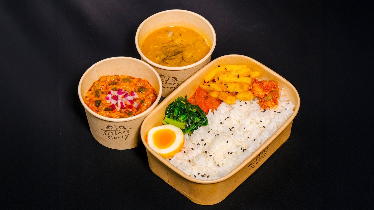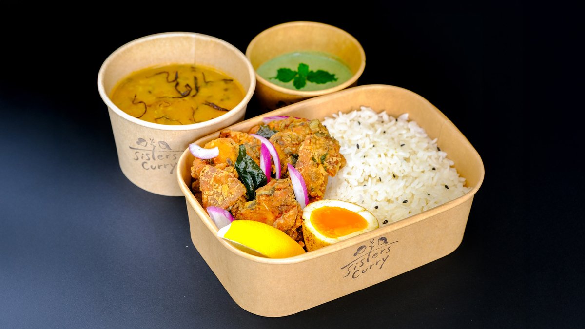 日本の唐揚げ弁当にインスパイアされた、スパイス香るオリジナル弁当。カレーリーフやフェンネルでマリネした南インド風鶏の唐揚げ4個に、レンズ豆のスープ、ターメリック卵、爽やかなミントソース、そして香ばしいスパイスふりかけ「ドゥロアチャール」を添えました。日本米とバスマティ米のブレンドごはんと一緒に、ひと口ごとに新しい味わいを楽しめます。電子レンジ対応・環境にやさしいパッケージでお届けします。 Inspired by the Japanese karaage bento, this is our original spice-rich version. Features 4 pieces of South Indian-style fried chicken marinated with curry leaves, fennel, and ajwain, served with lentil soup, turmeric egg, refreshing mint sauce, and Nepali-style spice sprinkles (Dhulo Achar). Paired with a blend of Japanese and basmati rice, every bite brings comfort with bold new flavors. Delivered in microwave-safe, eco-friendly packaging.