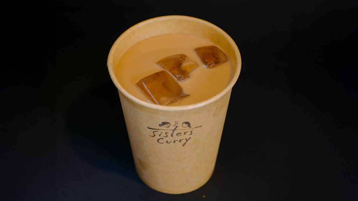 カルダモン、クローブ、ショウガなどのスパイスを加えた、冷たいミルクティーです。 Chilled milk tea flavored with cardamom, cloves, ginger, and other spices.