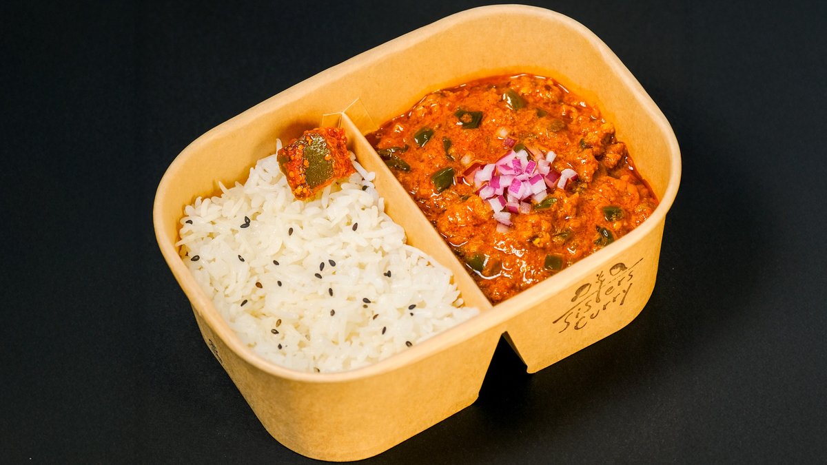 香り豊かな日本米とバスマティ米のブレンドごはんに、ピーマンとヨーグルトで仕上げたまろやかでコクのある北インド風キーマカレーを添えた一皿。カレーは仕切りで分けているので、お好みでごはんにかけて混ぜながら楽しめます。トマトのアチャール付き。電子レンジ対応・環境にやさしいパッケージでお届けします。 A fragrant blend of Japanese and basmati rice served with a mellow, rich North Indian-style keema curry made with green peppers and yogurt. The curry is served on the side with a divider — pour it over the rice and enjoy mixing as you like. Comes with tomato achar. Delivered in microwave-safe, eco-friendly packaging.