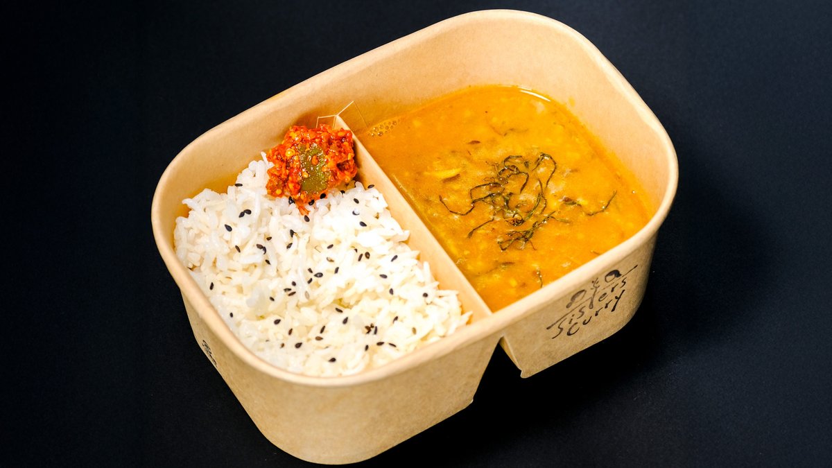 香り豊かな日本米とバスマティ米のブレンドごはんに、ネパール風レンズ豆のスープを添えた一皿。ギーと野生の乾燥ニンニクの葉で味付けしたダルは、深い風味とコクが特徴です。カレーは仕切りで分けているので、お好みでごはんにかけて混ぜながら楽しめます。トマトのアチャール付き。電子レンジ対応・環境にやさしいパッケージでお届けします。 A fragrant blend of Japanese and basmati rice served with Nepali-style lentil soup (dal). Seasoned with ghee and wild dried garlic leaves, the dal has a rich and deeply aromatic flavor. The curry is served on the side with a divider — pour it over the rice and enjoy mixing as you like. Comes with tomato achar. Delivered in microwave-safe, eco-friendly packaging.