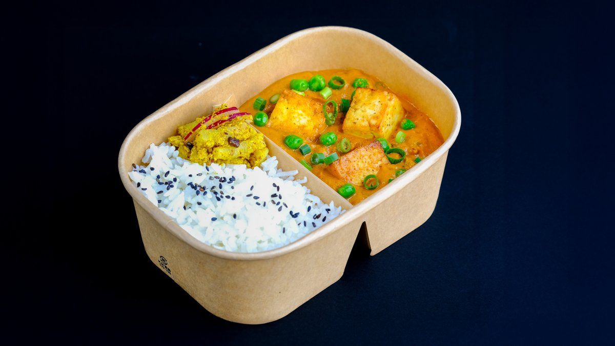 香り豊かな日本米とバスマティ米のブレンドごはんに、豆腐とグリーンピースのまろやかなスパイスカレーを添えた一皿。インド家庭料理マタルパニールをベースに、豆腐でヴィーガン仕様に仕上げました。カレーは仕切りで分けて盛り付けているので、お好みでごはんにかけて混ぜながらお楽しみください。トマトのアチャール付き。電子レンジ対応・環境にやさしいパッケージでお届けします。 A fragrant blend of Japanese and basmati rice served with a creamy, gently spiced tofu & green peas curry. Inspired by the North Indian dish Matar Paneer and reimagined as a vegan version with tofu. The curry is served on the side with a divider — pour it over the rice and enjoy mixing as you like. Comes with tomato achar. Delivered in microwave-safe, eco-friendly packaging.