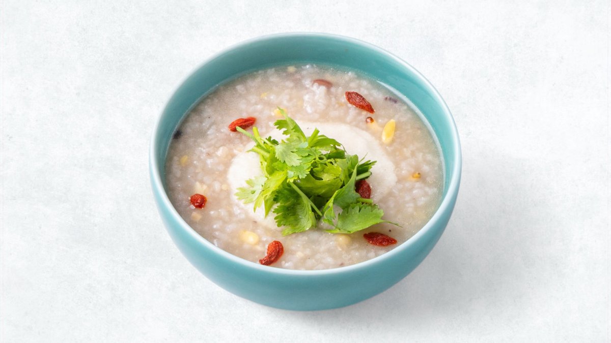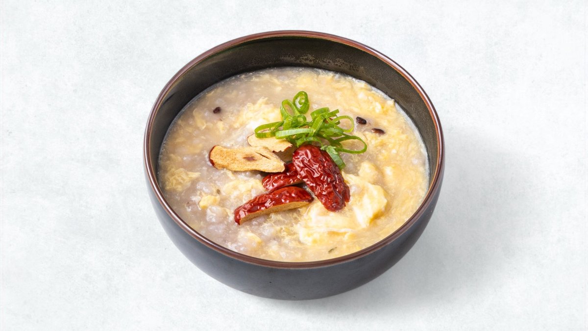 どの薬膳粥も、水ではなくボーンブロスを使って炊いています。塩を極力控えながらも味わい深い粥になっています。