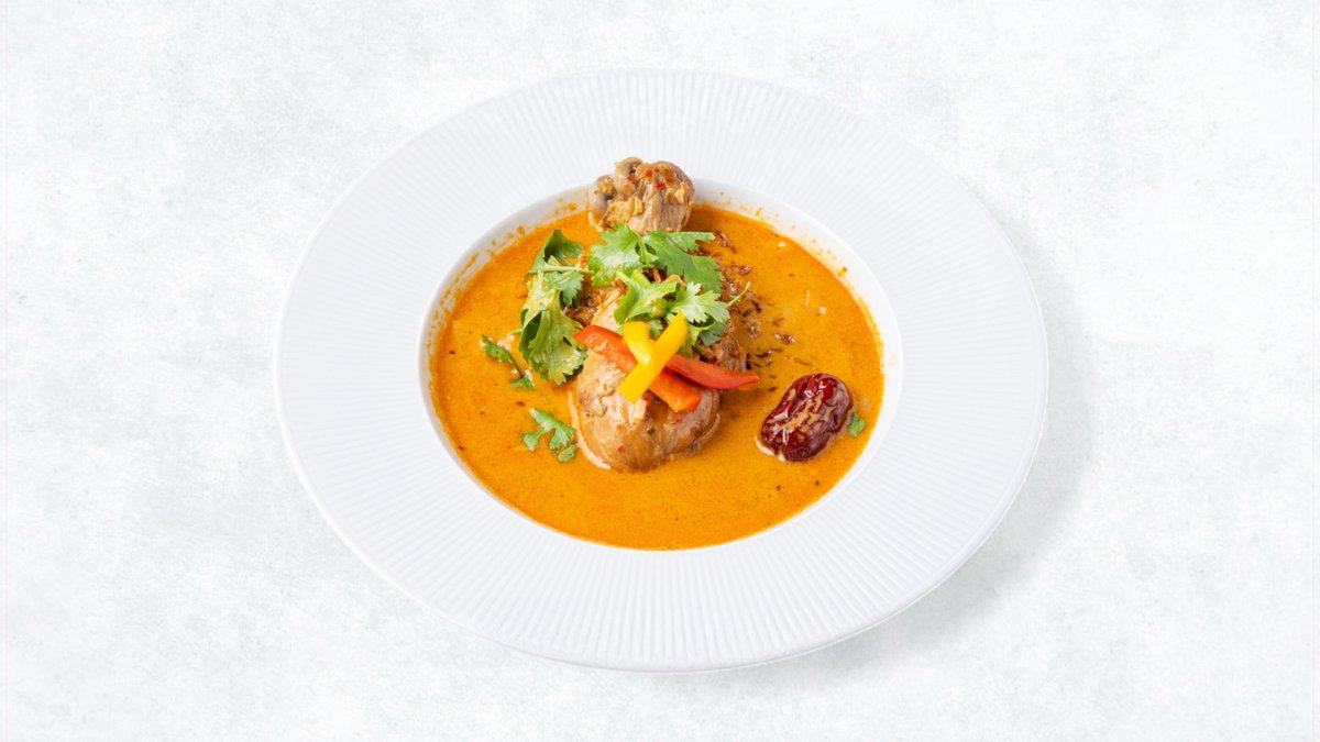 当店一番人気商品。 スープカレーと17穀米(200g)のセットです。 ルーや小麦、バターは使わずグルテンフリーでヘルシーに仕上げてあります。 インドネシアのココナッツスープカレーをベースに、滋養強壮の16種薬膳をブレンド。 お肉は大山鶏のもも肉をジューシーに焼き上げ食べ応えも十分。こぶみかんの爽やかさとココナツミルクのコク、薬膳スパイスの風味が絶妙です。 「名前に薬膳ってついてるけど…美味しいんだ!」と、きっと思ってもらえるスタッフイチオシの一杯です。