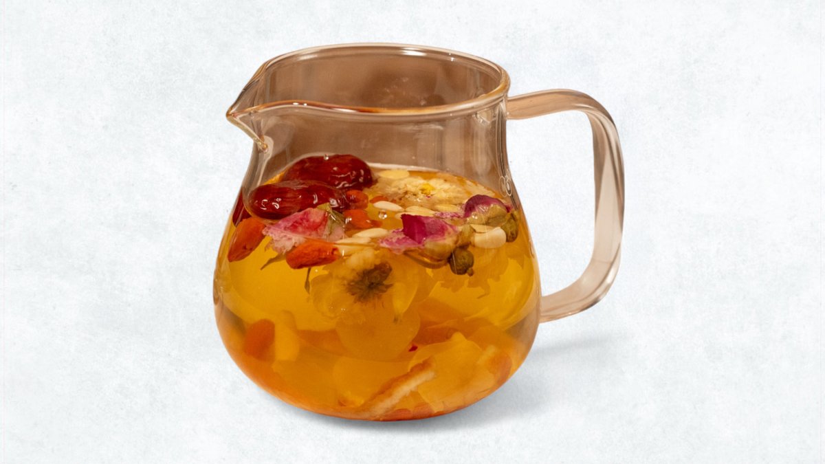 無添加、8種の自然素材をブレンド。美容・潤い・気の巡りを一度に整えるスペシャル薬膳ブレンドです。香りと滋養が調和した贅沢な一杯は保湿・巡り・リラックス・アンチエイジング・目の疲れ・シワなど、女性の様々な悩みを穏やかに緩和します。