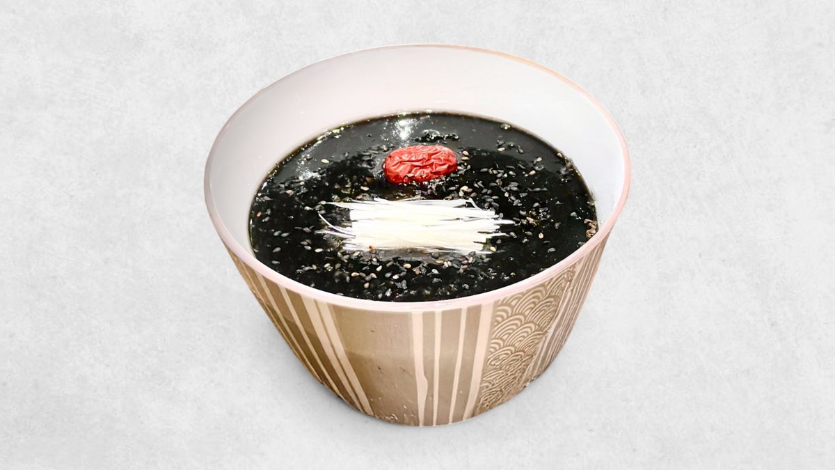 冬に弱りやすい“腎”を支える黒の薬膳素材を、水ではなく自家製ボーンブロスで炊き上げました。 黒米・黒豆・黒木耳・黒舞茸・黒胡麻・岩海苔・チャコールパウダー(超微粒子竹炭)が、巡りと潤いを整え、クレンズ・美肌・美髪・アンチエイジングに寄り添います。さらにボーンブロスからのコラーゲンも大量に摂取できる美容設計。 【美と健康と、丁寧な食事】をコンセプトにする”The SoupWell”ともいえるお粥に仕立てました。トッピングを温泉卵で”月夜”風にするのもおススメです。 週に一度のクレンズ習慣に是非。