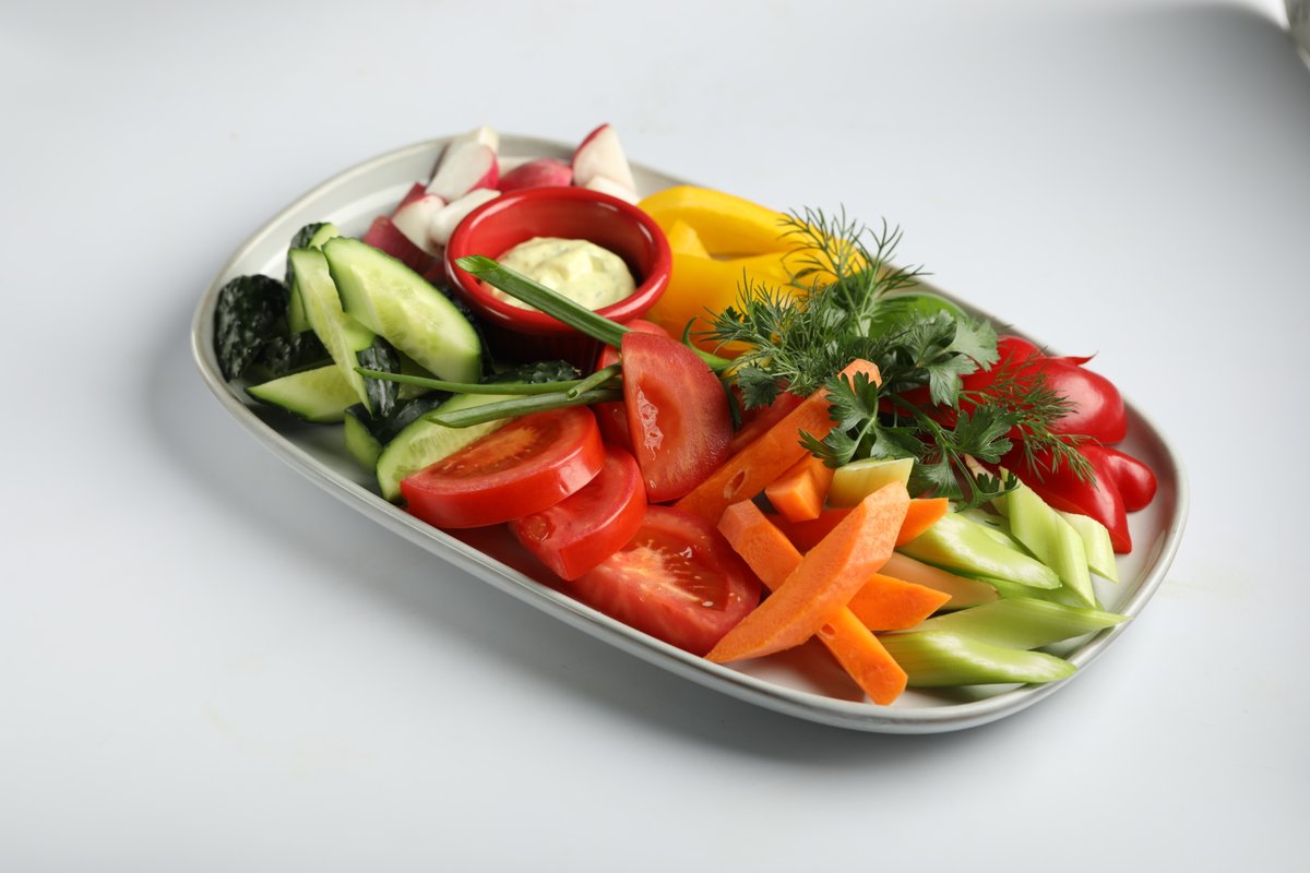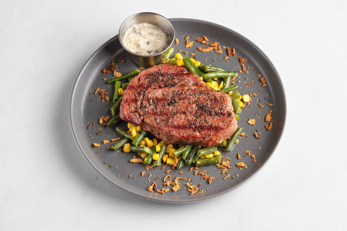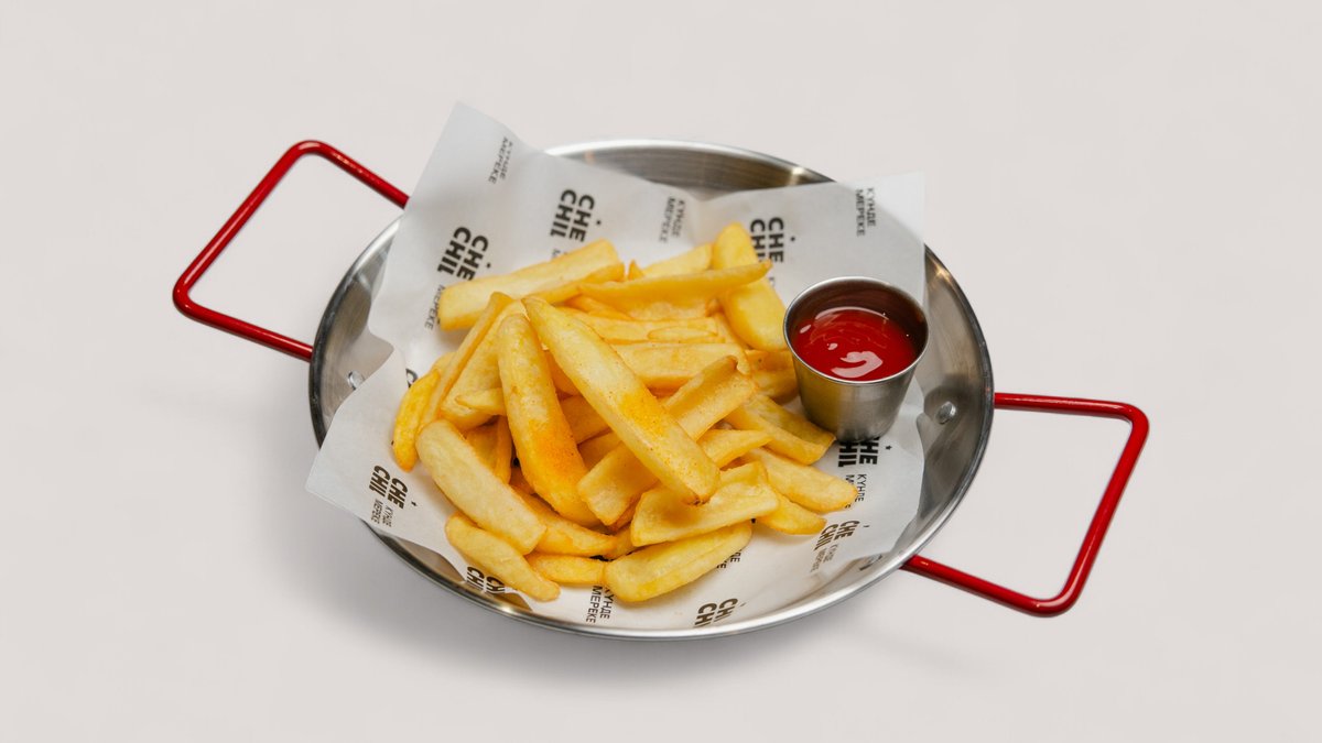 Картофель фри с овощами и куриным филе в соусе Терияки
