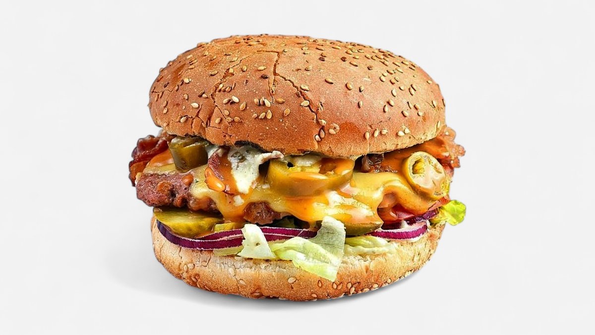 Всё самое вкусное с майонезом: хрустящий айсберг, пикантный ростбиф, куриная грудка, обжаренные шампиньоны, сладкий перец и маринованные огурцы