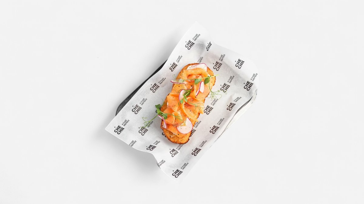 закуска из маринованной семги со сливочно-творожным кремом, рукколой и ржаной булочкой с печи.