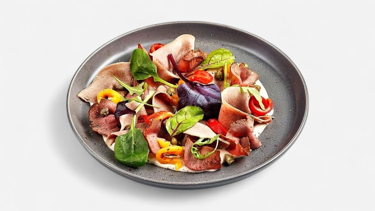 Кусочки запеченного ростбифа, куриный рулет, говяжий язык и копченый курдюк