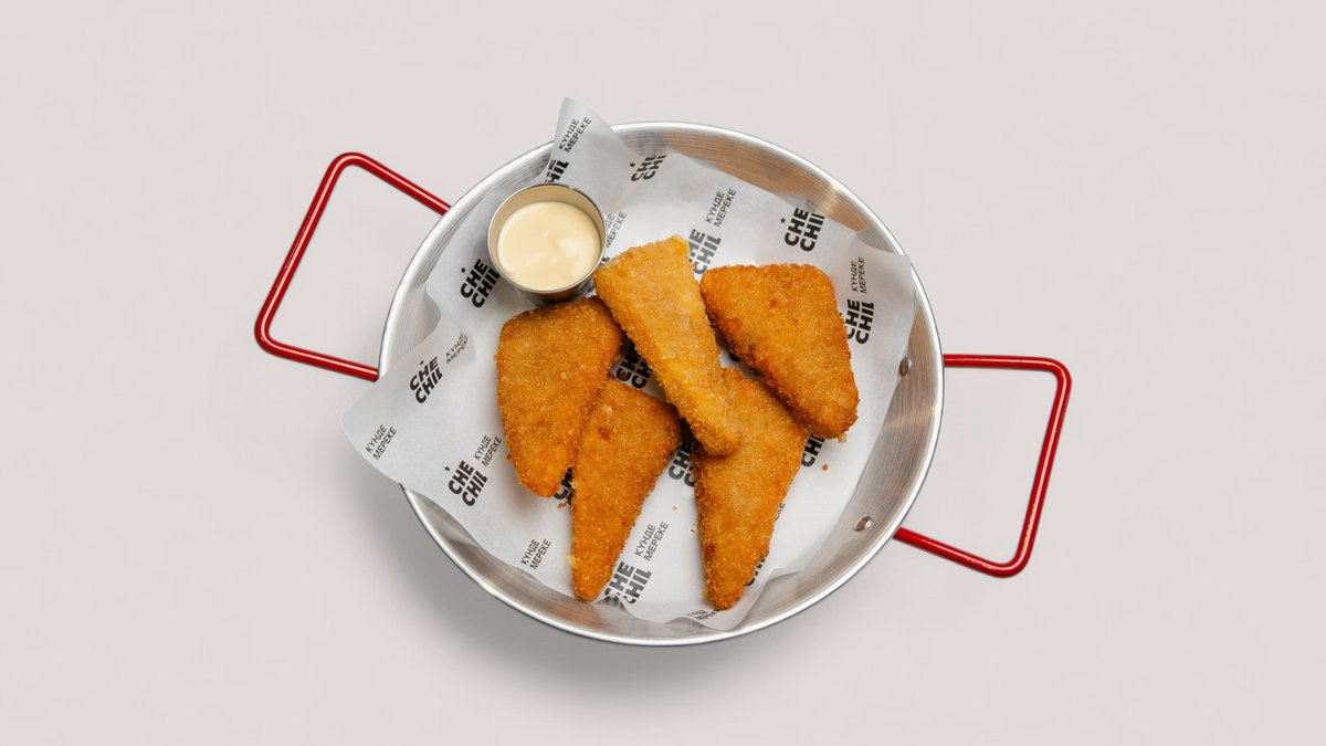 Куриные наггетсы, мини чебуреки с мясом, картофельные хэшбраун, сырные наггетсы, луковые кольца