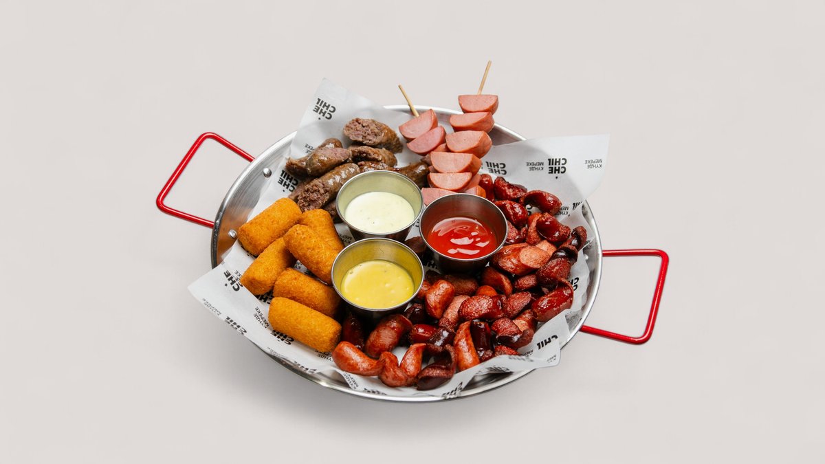 Жареный или копченый чечил, картофельные чипсы, чешские гарлики и мини чебуречки с мясом