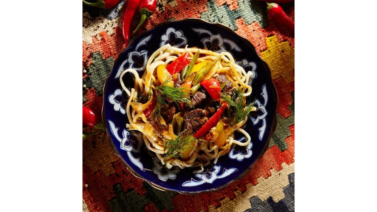 Lagman, celery, carrot, zucchini, green beans, onion, bell pepper, beef fillet