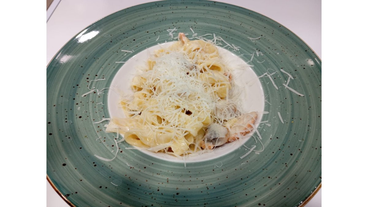 Fettuccine, chicken fillet, onion, mushrooms, cream, herbs, parmesan