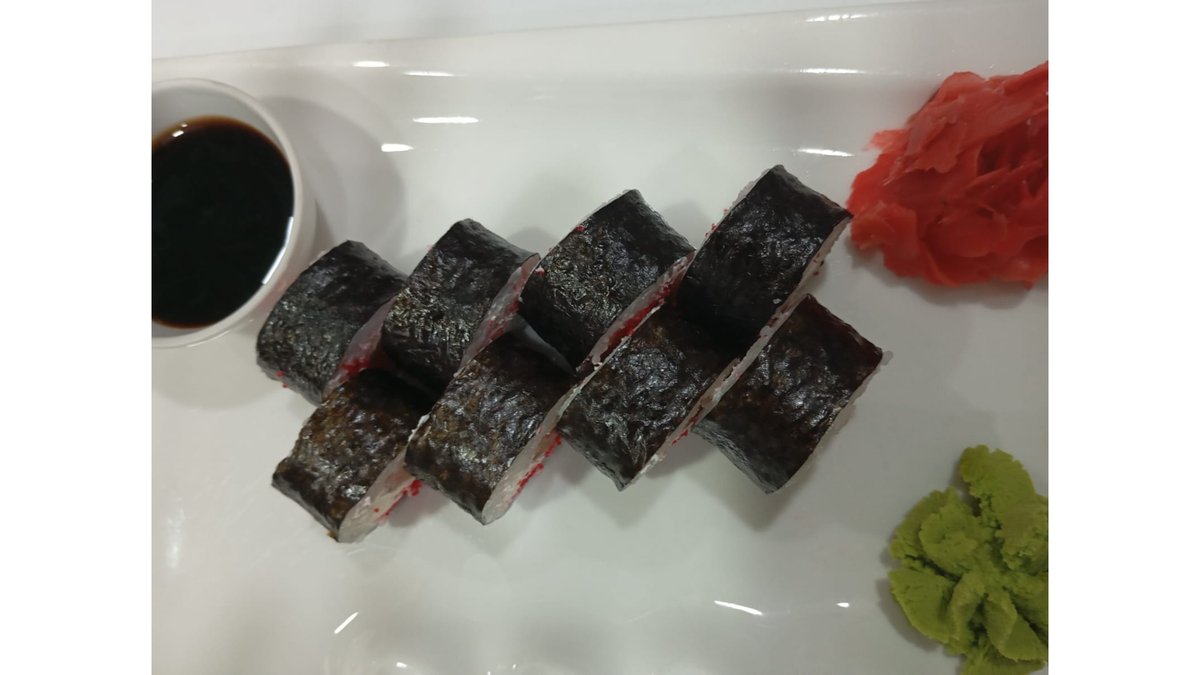 Rice, salmon, shrimps, crab mix, masago caviar, nori