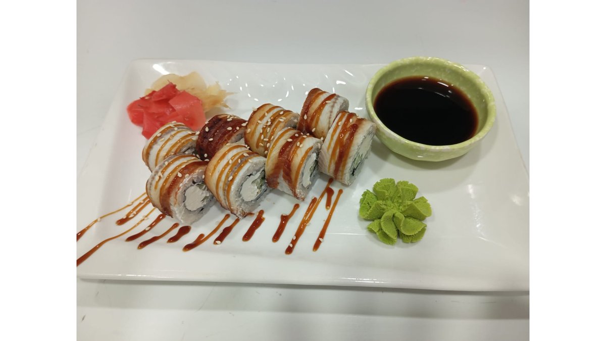 Cream cheese, cucumbers, orange masago caviar, eel mix, unagi sauce