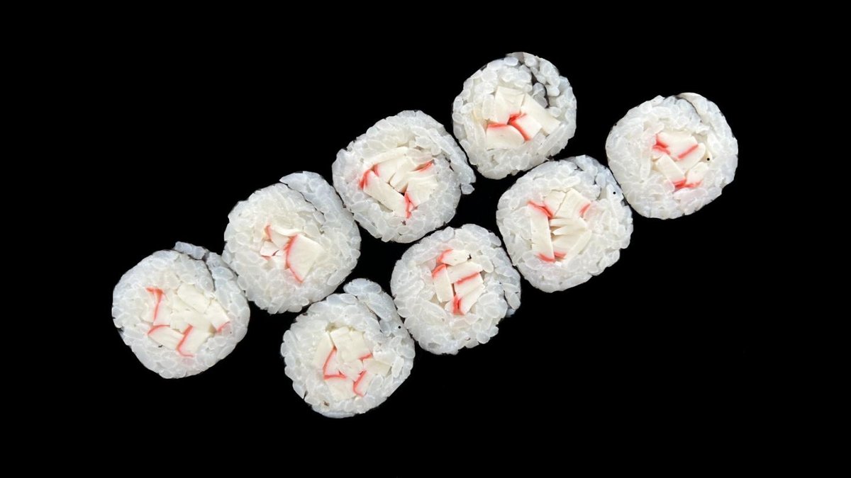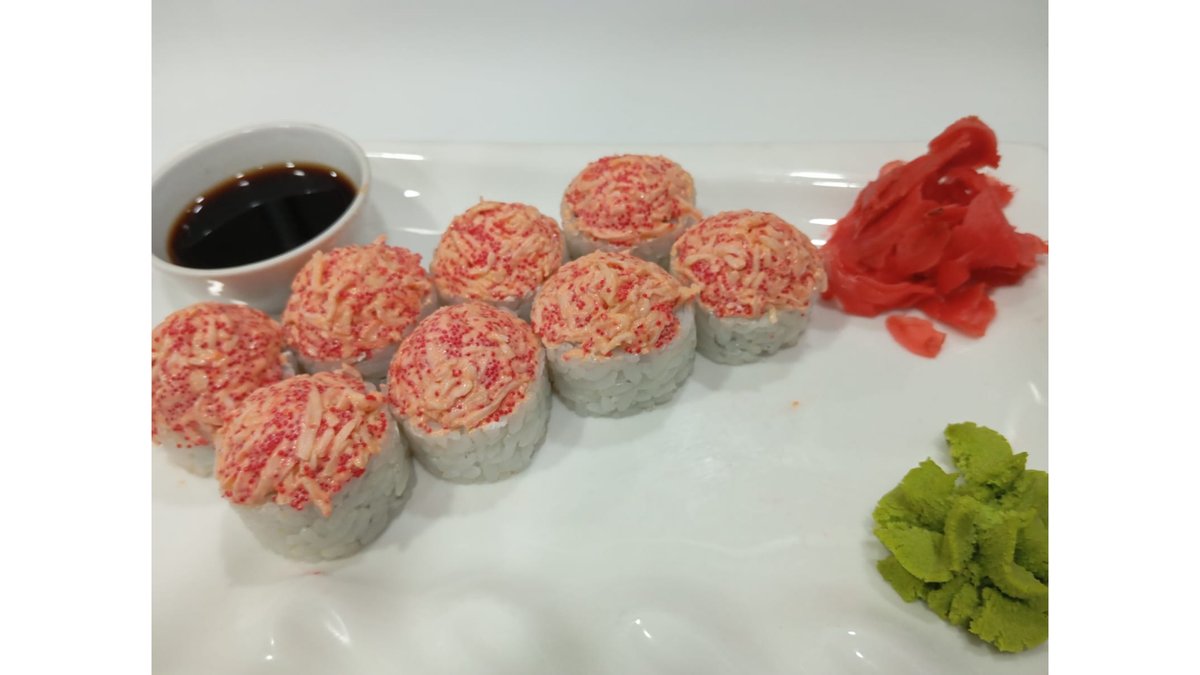 Rice, crab mix, cucumbers, masago caviar, white sauce