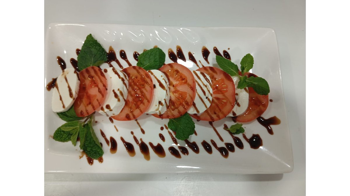 Tomatoes, mozzarella cheese, balsamic sauce, herbs