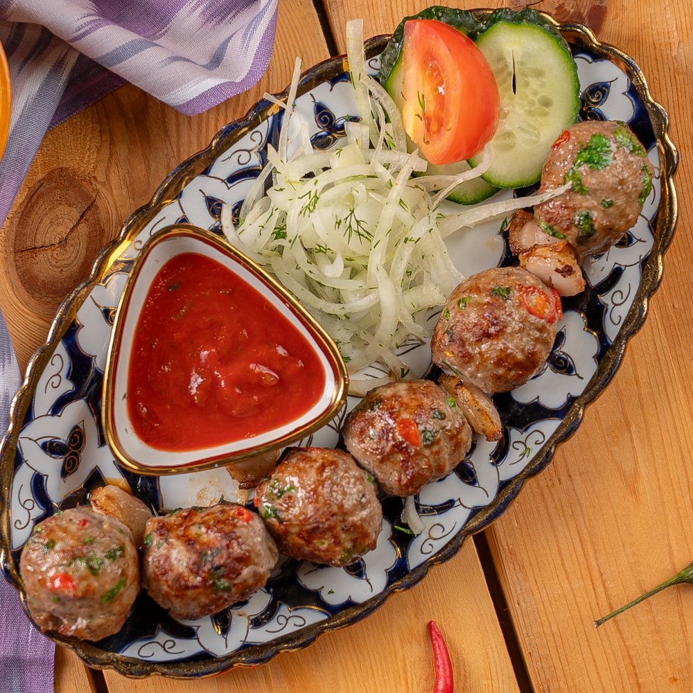 С любовью приготовленное тесто и мякоть говядины, рубленная с луком и курдюком. Подаем с йогуртово-чесночным соусом и укропом. 350/60 гр.