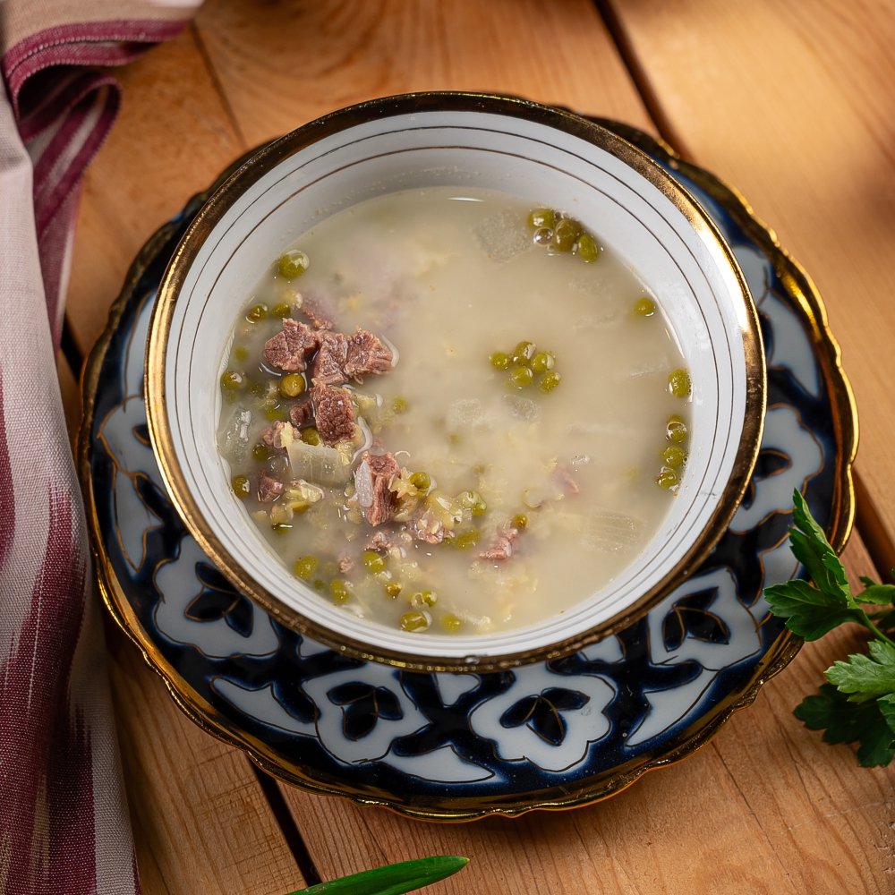 Наваристый бульон из говяжьей мякоти с машем. Подаем с йогуртом 450гр