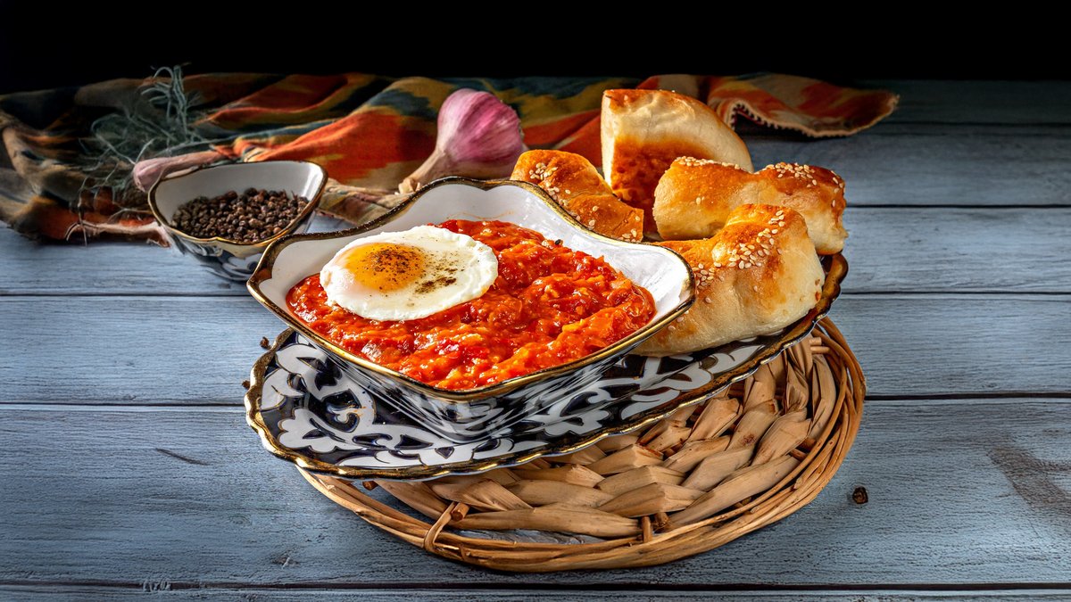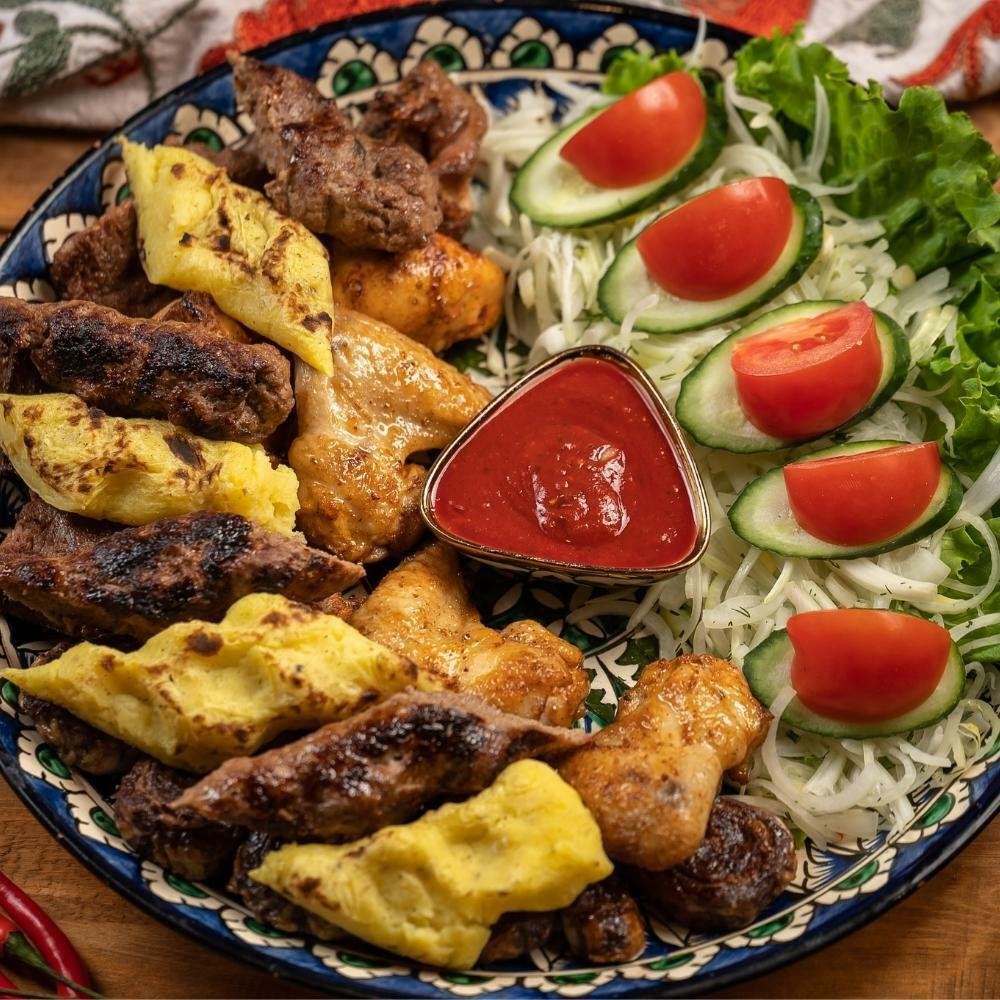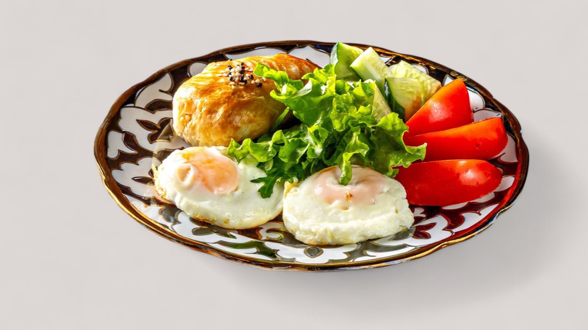 сытное ароматное блюдо,сочетающее в себе глазунью с свежими овощами и аппетитной самсы с говядиной. 200гр