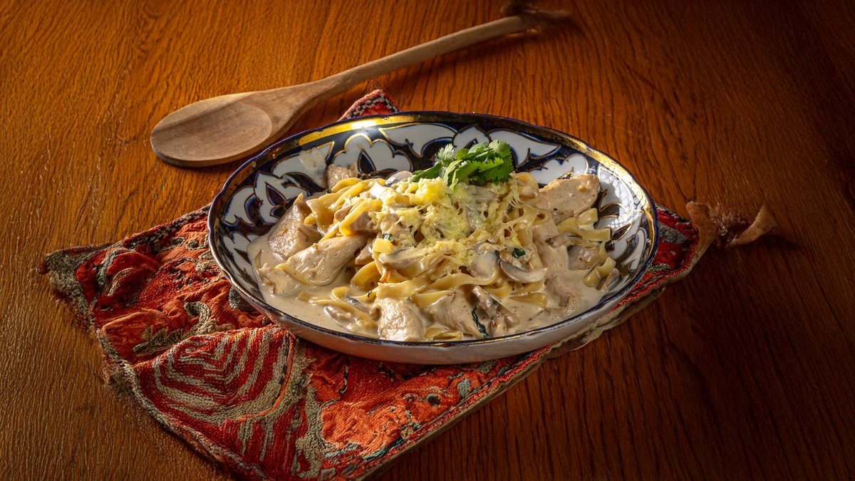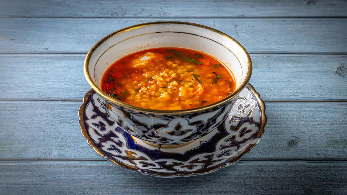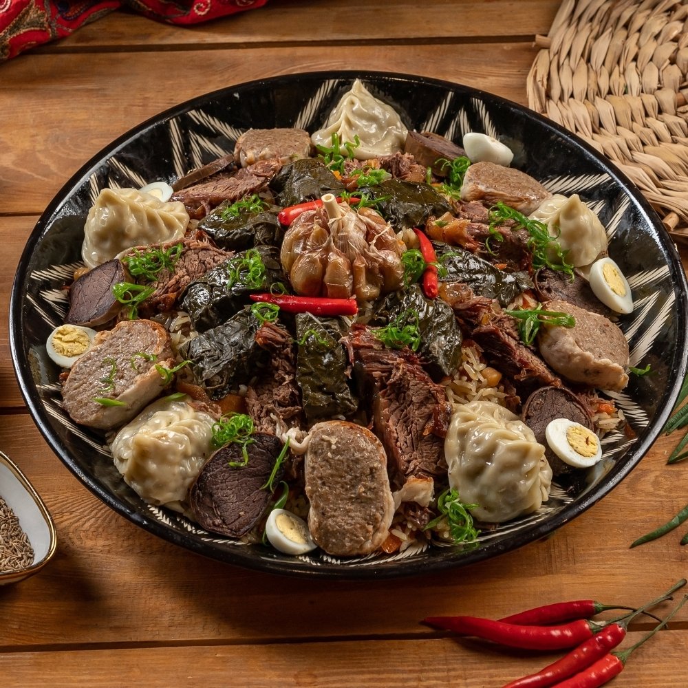 Национальное узбекское блюдо из конины, говядины, домашней лапши, лука и насыщенного бульона. 400 гр.