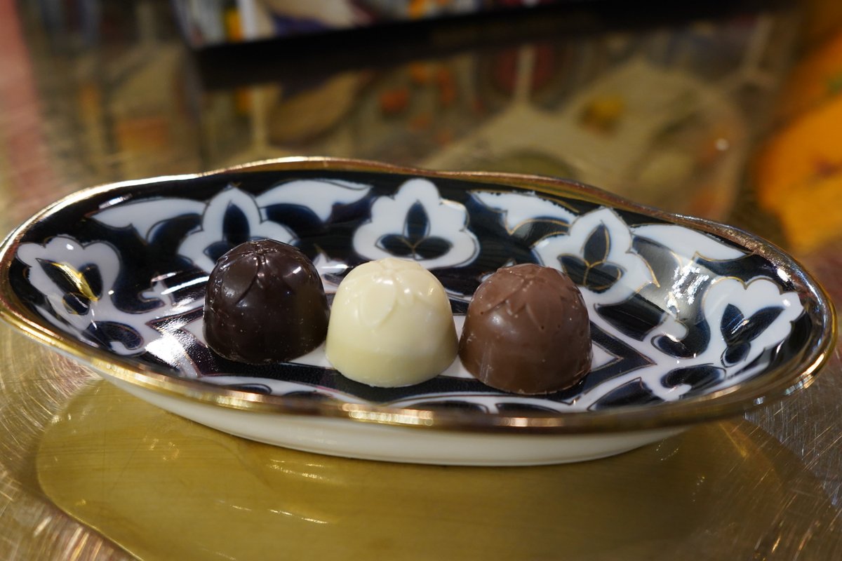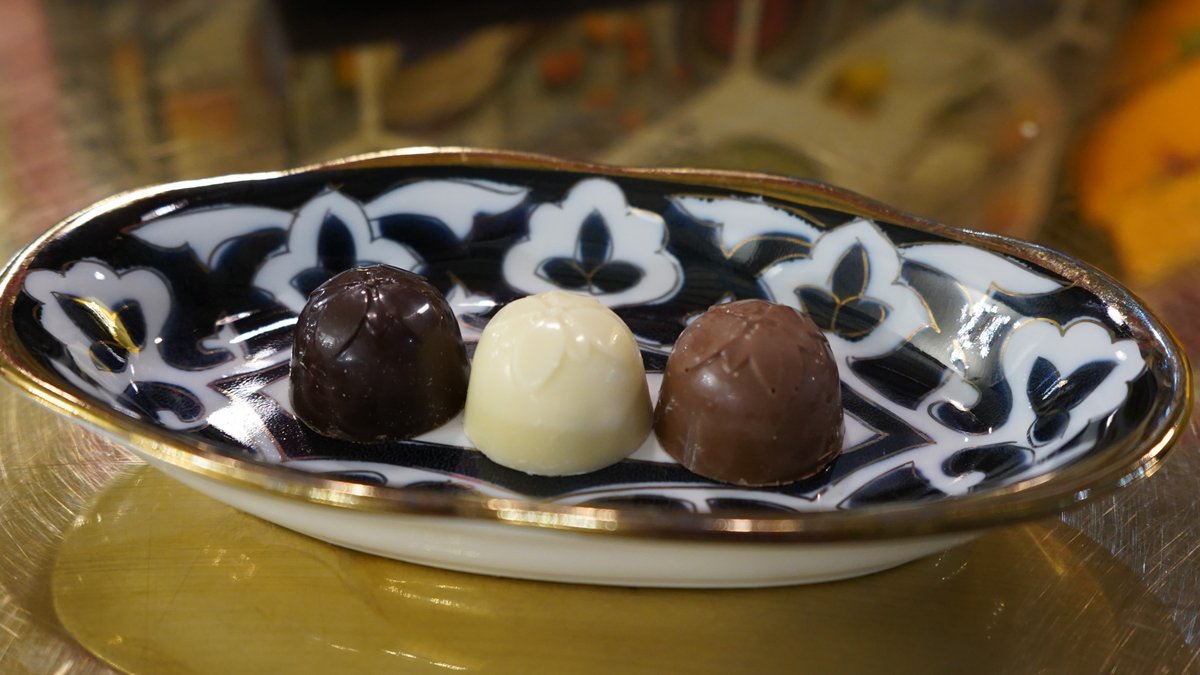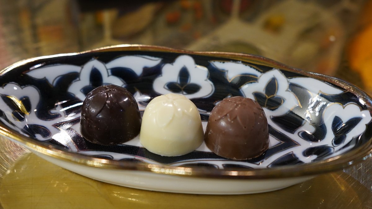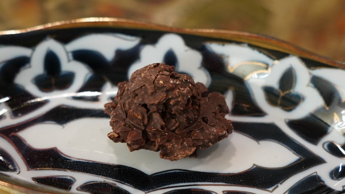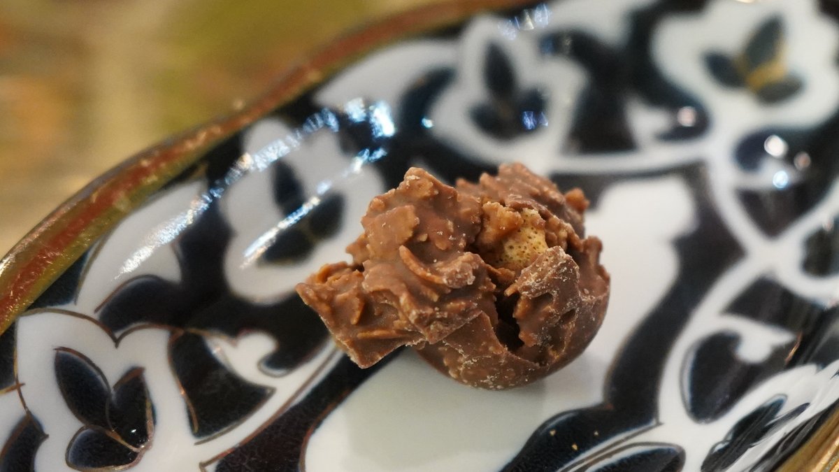 плитка шоколада с начинкой из фисташковой и кунжутной пасты и тонкого хрустящего теста катаифи.