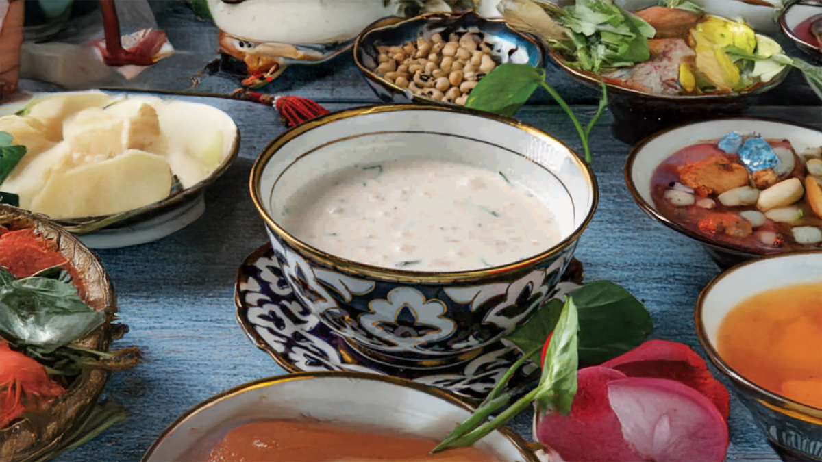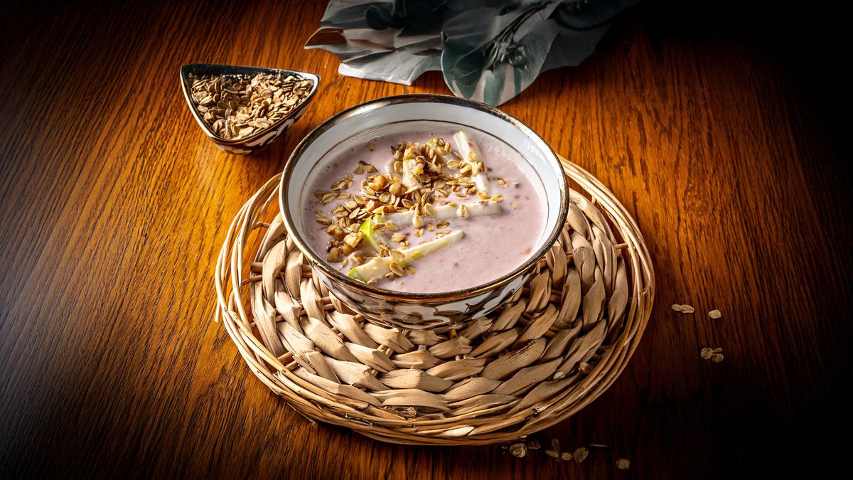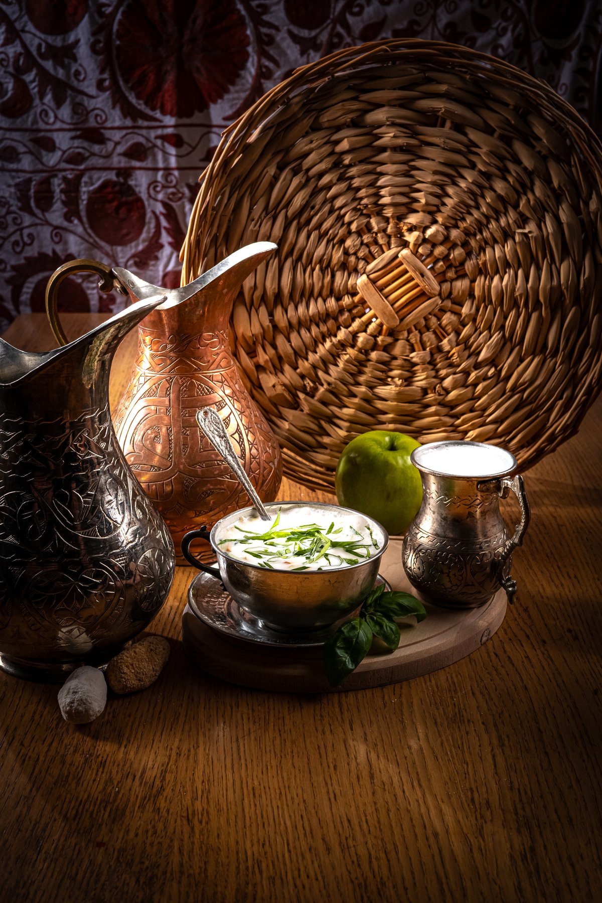 Национальный узбекский кисломолочный напиток, подаётся с кусочками яблока и базиликом. Идеален для утоления жажды летом