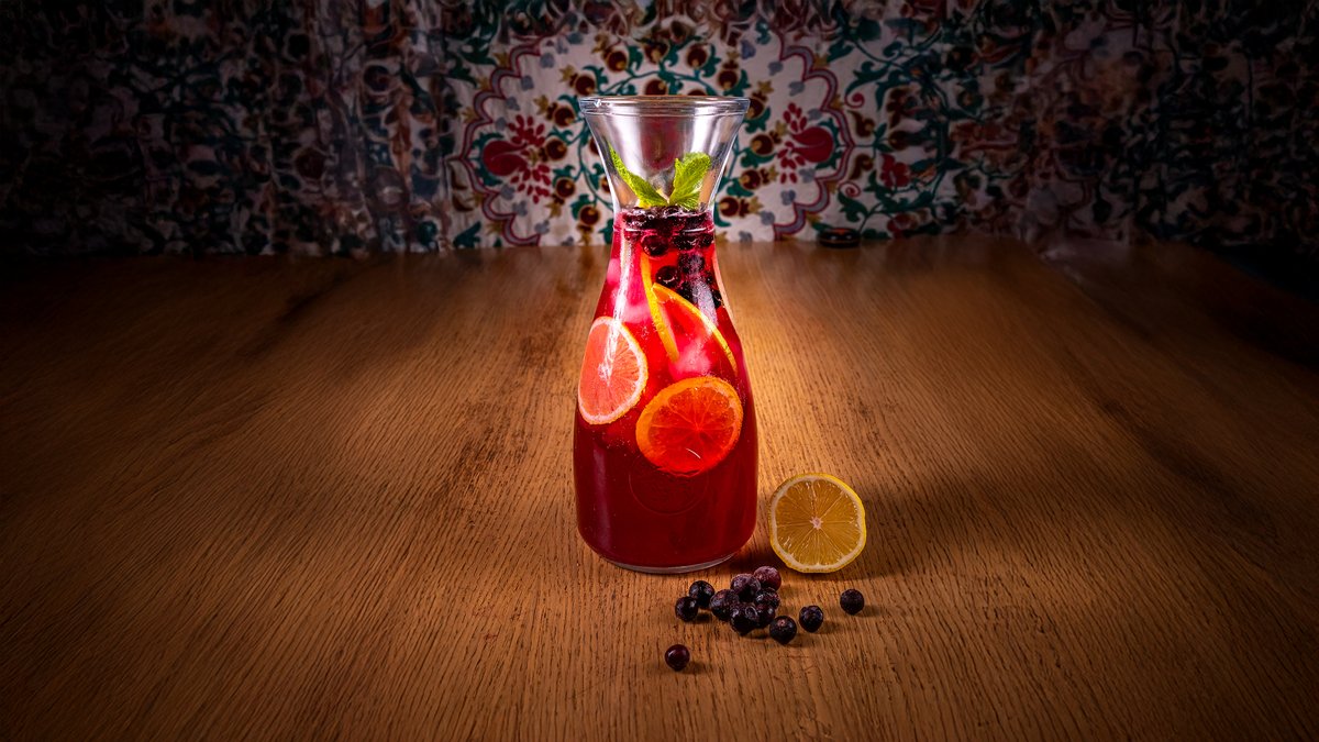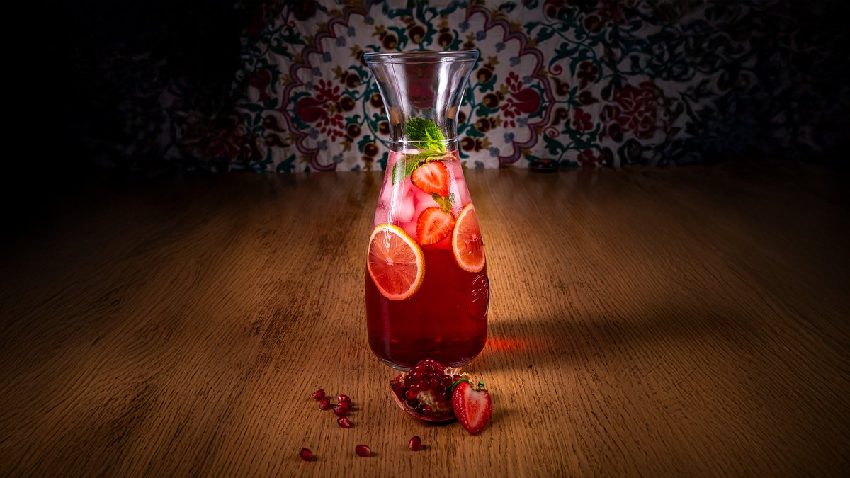 Прохладительный и освежающий напиток на основе натуральных пюре из манго и маракуйи, с добавлением листьев мяты и долек цитрусовых, газированной воды. Подаётся со льдом