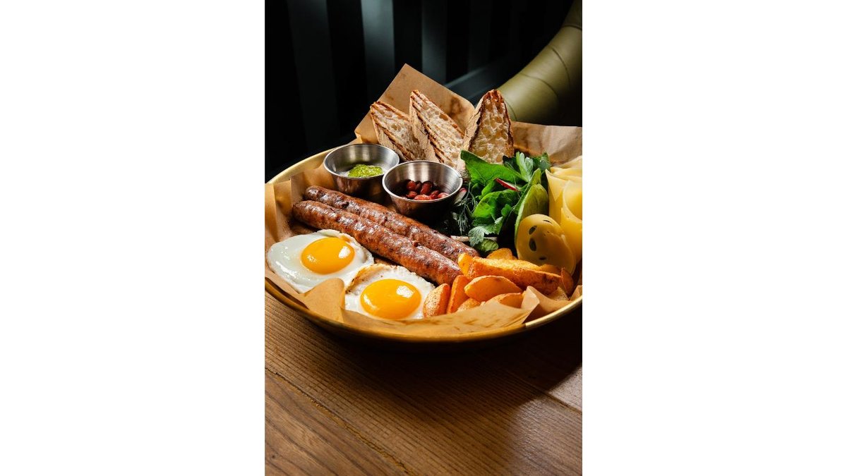 Golden bauyrsaks with zhaya and suzbe, aromatic bal-kaymak, fresh salad and scrambled eggs, and homemade vegetables.