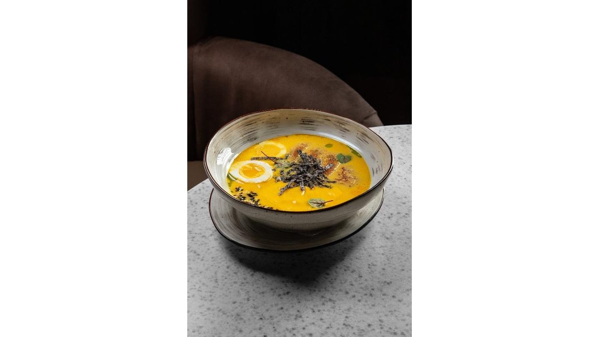 A delicate, creamy, cheese-infused broth with ramen noodles, chicken fillet, and chicken egg, topped with melted cheddar cheese