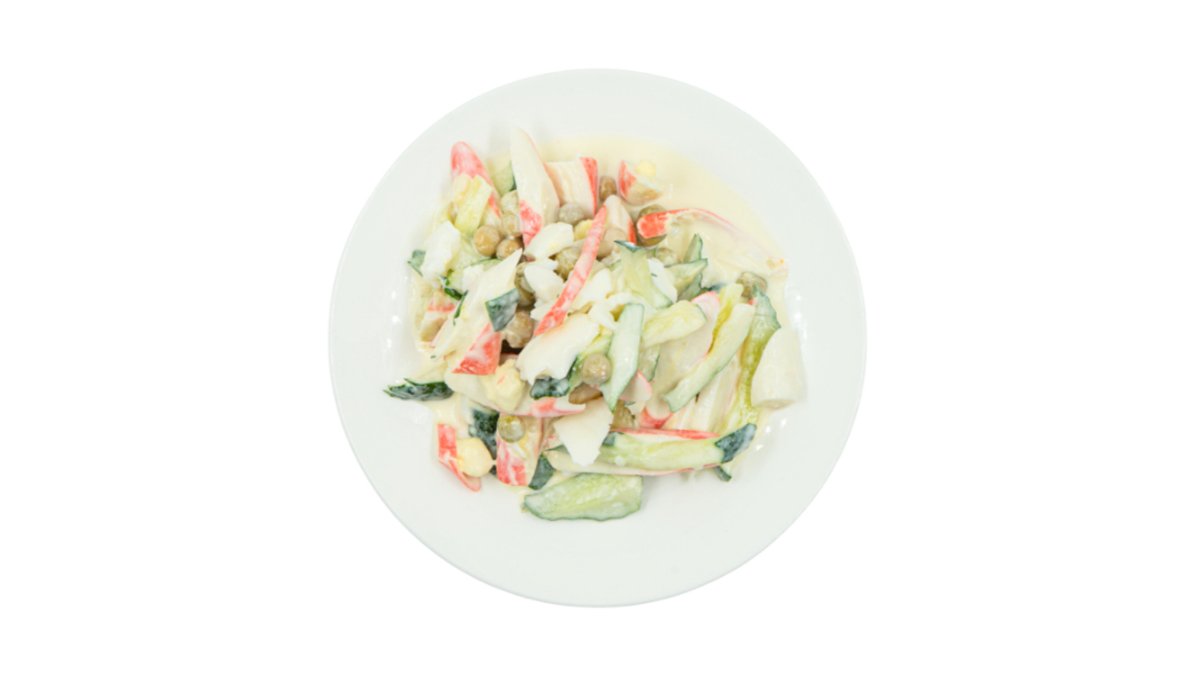 Нежный салат из крабовых палочек, куриных яиц, сладкой кукурузы и сочного свежего огурца, заправленный майонезом. Легкий и освежающий, идеально подходит для обеда или ужина.