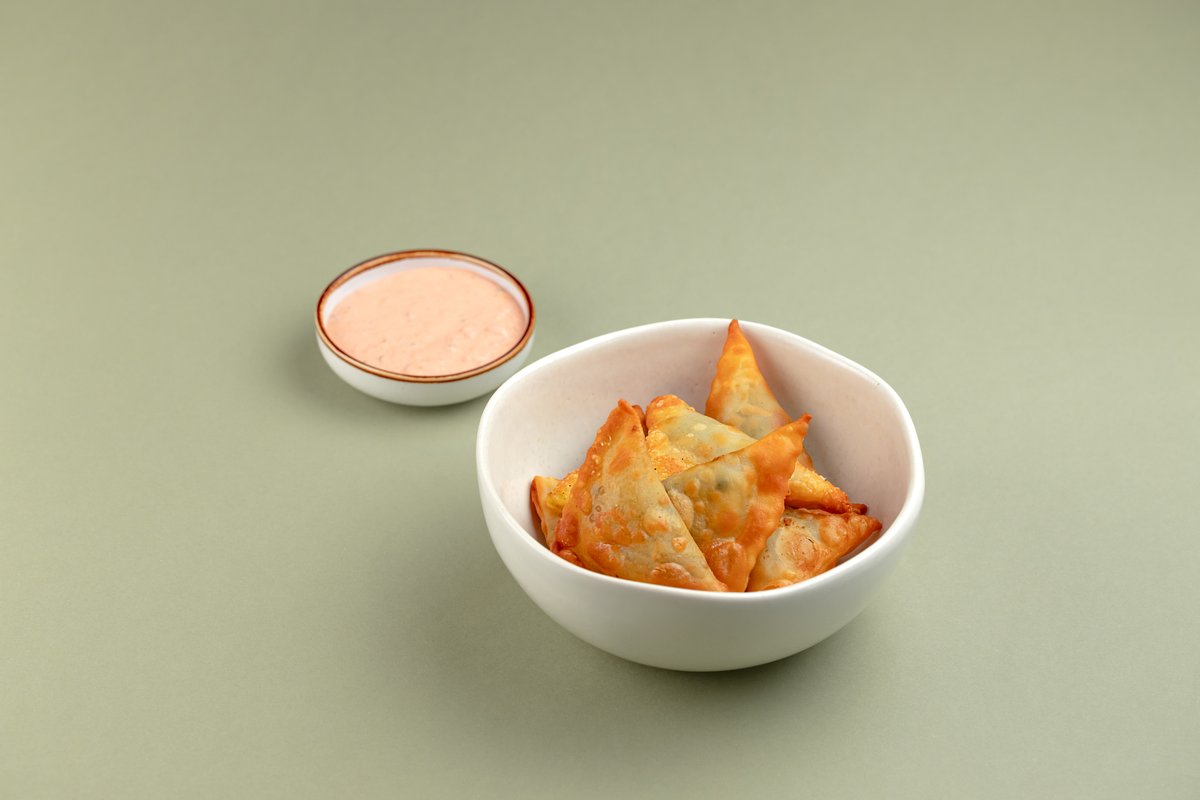 Жаренные мини чебуреки с говядиной с соусом 1000 островов
