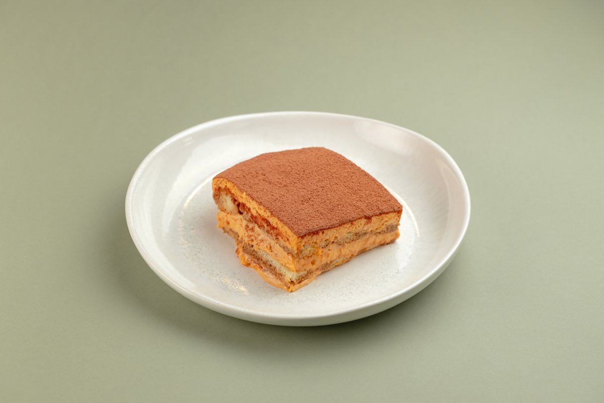 Нежный сливочный крем на основе мягкого сыра со сгущённым молоком с прослойкой из печенья савоярди, пропитанного кофе