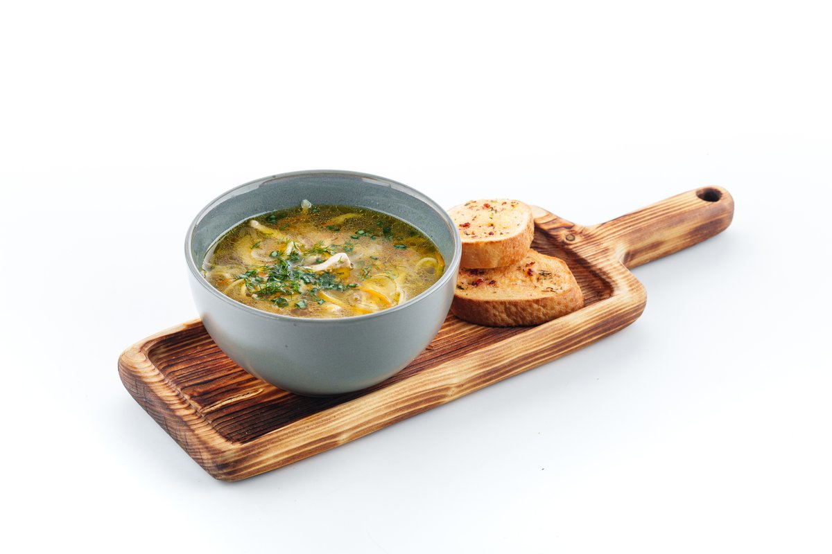 Пельмени по-домашнему с бульоном с домашней сметаной