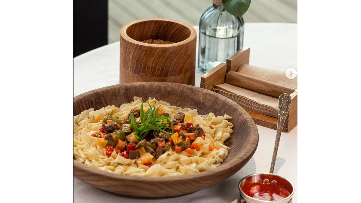 Говядина, яйцо куриное, чабрец лапша, помидор, соевый соус, лазджан, вода