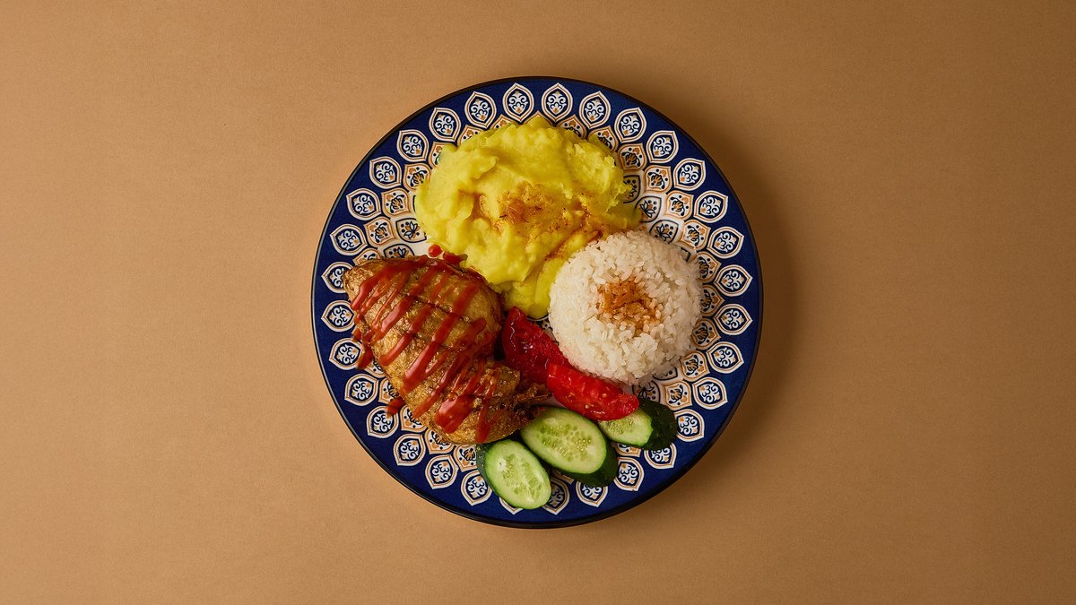 Сытный праздничный сет с курицей по-тайски с гарниром, классическим оливье, сочным люля-кебабом 1шт. и домашним компотом 1 л. Отличный вариант для уютного новогоднего стола.