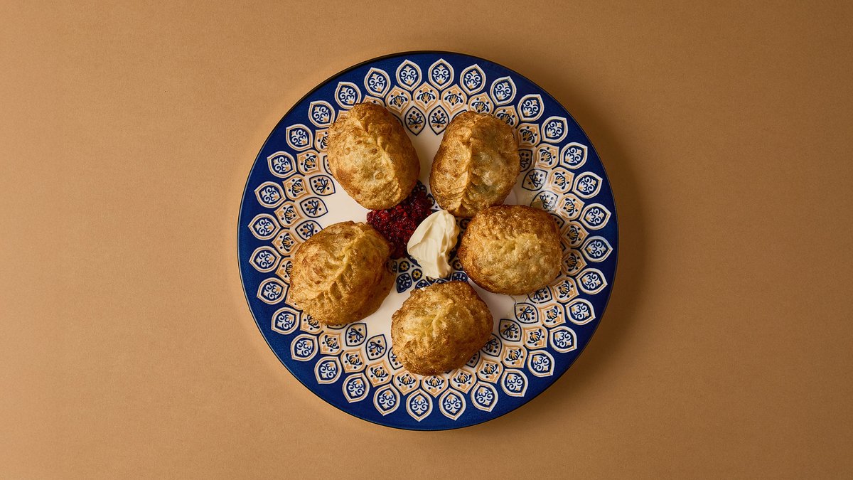 Хошан с тыквой — хрустящие жареные манты с рубленой говядиной, тыквой и луком, подаются со сметаной и острым соусом лазджан.