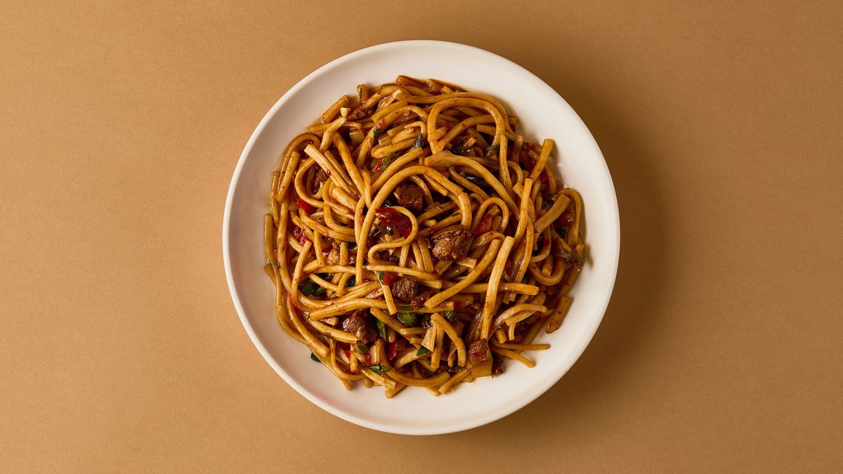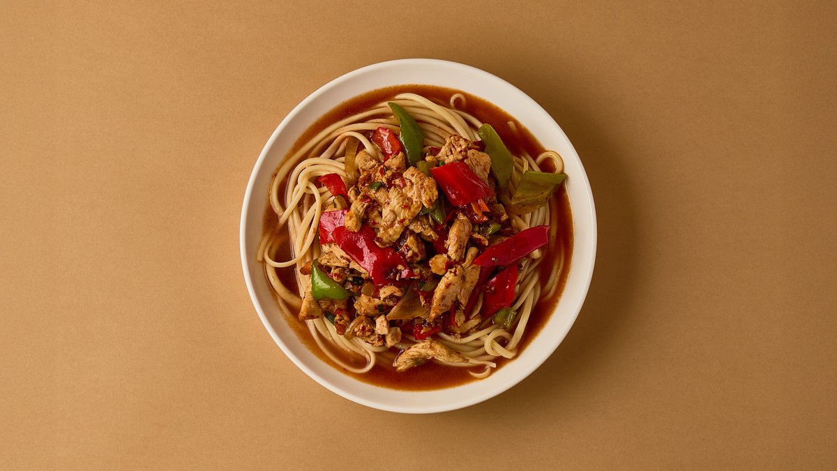 лапша в фирменном соусе с насыщенным вкусом обжаренных овощей, специй и ароматного масла чили.