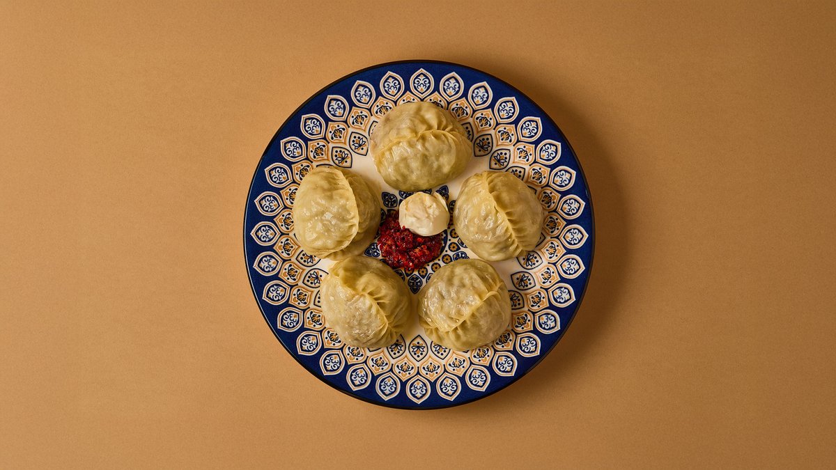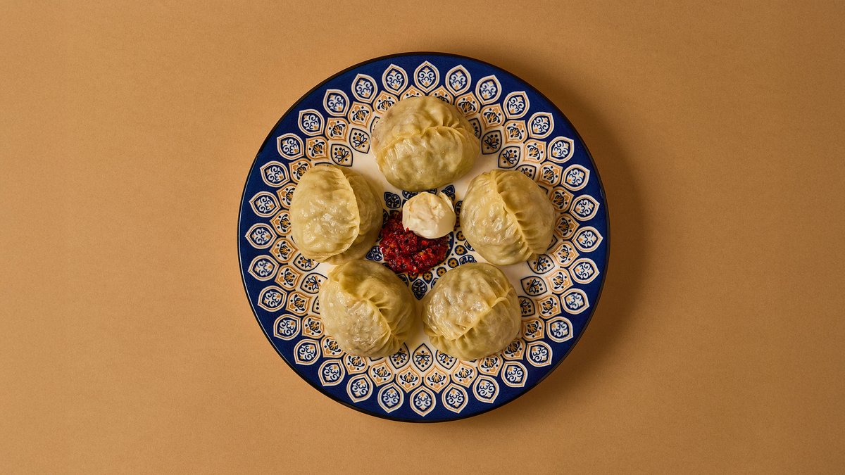 Манты — нежные паровые манты с рубленой говядиной и луком, подаются со сметаной и острым соусом лазджан.