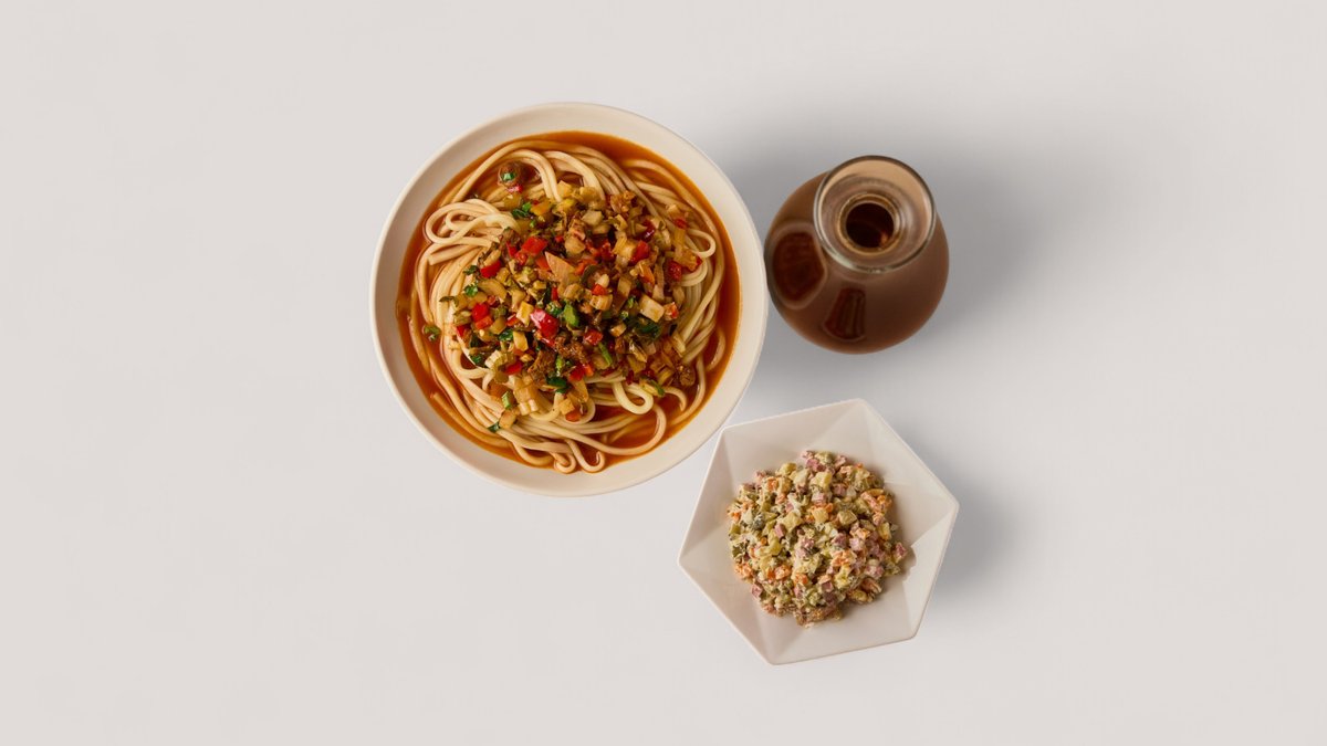 Насыщенный лагман суйру, оливье и прохладный компот 0.5 л.