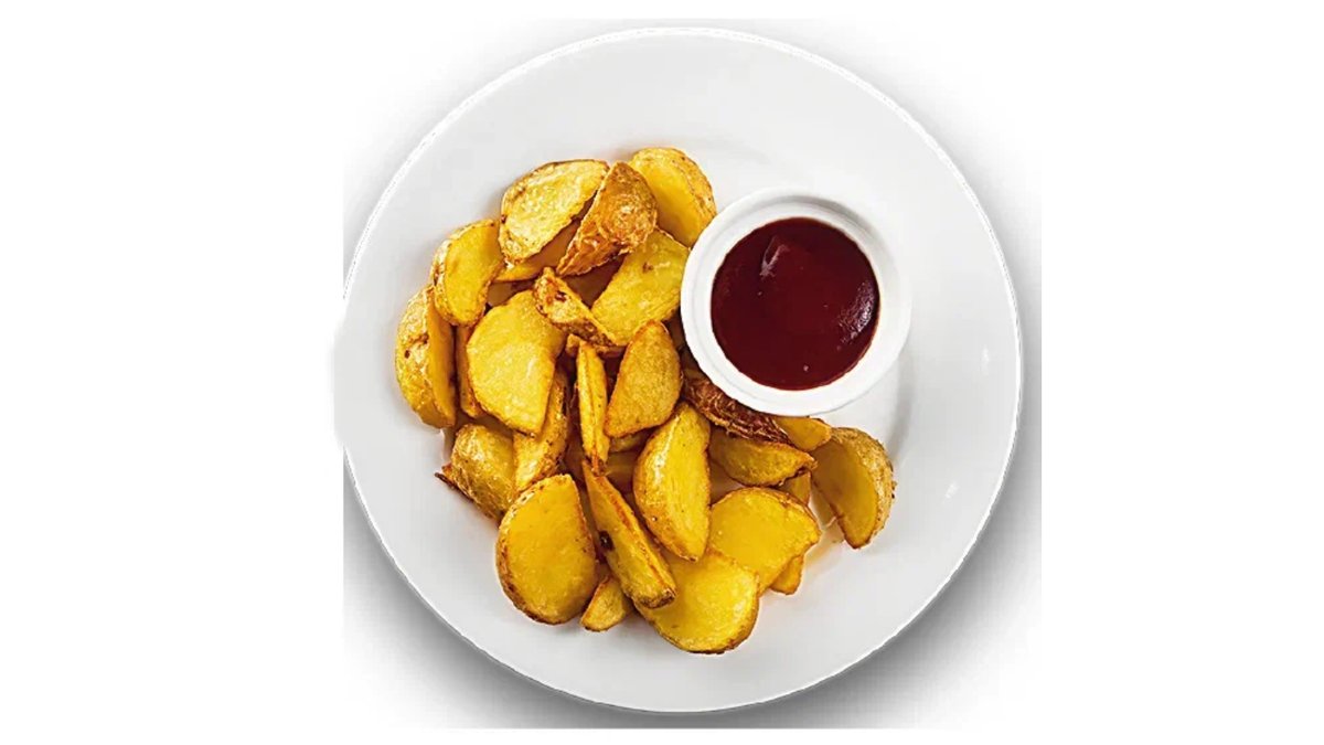 Говяжья котлета, сыр, яйцо, помидоры, соленые огурцы, лист салата Картофель фри, кетчуп