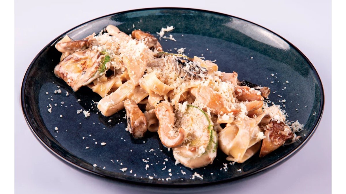 Куринное филе гриль, авокадо, листья салата, черри, сыр пармезан, кедровые орешки, семена чиа, ореховый соус