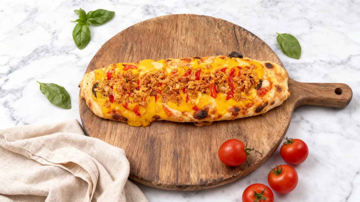Dough, cheeses: cheddar, mozzarella, gouda