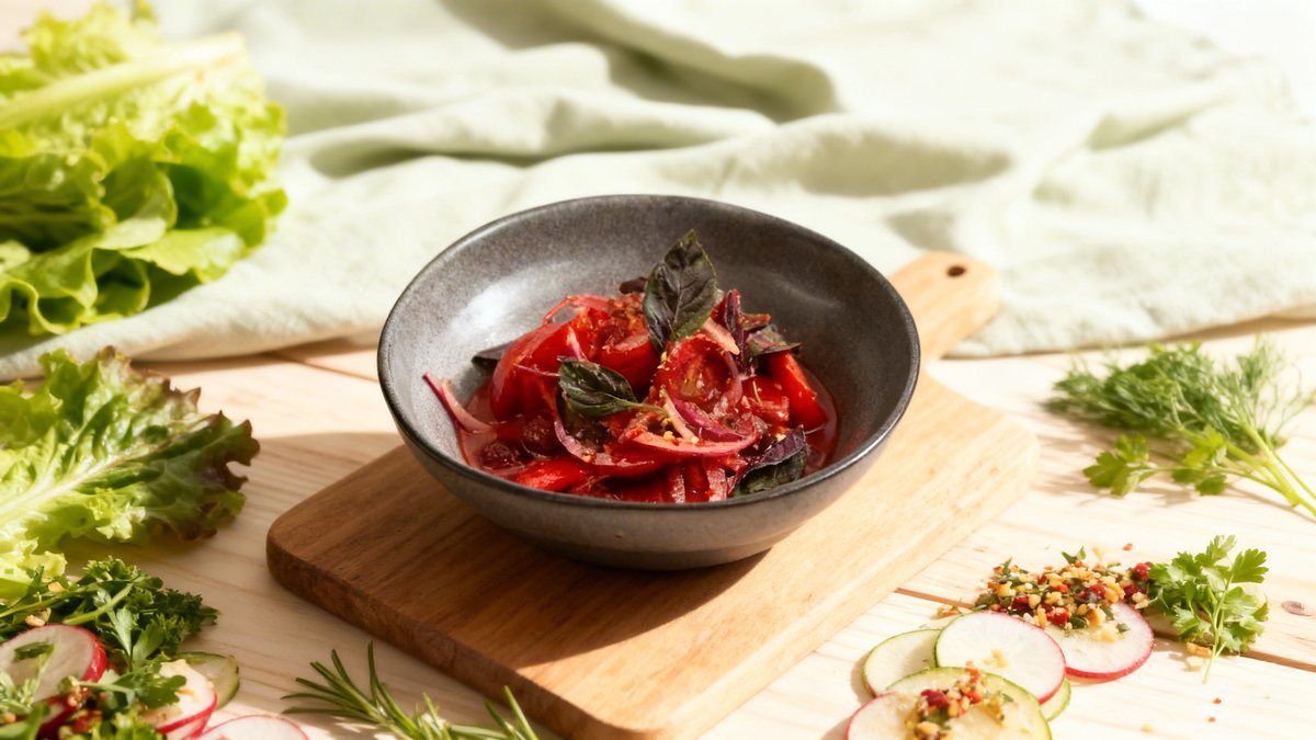 Kazy, zhaya, smoked kazy, wilted kazylyk, pickled red onion, cherry tomatoes, spices (black pepper, salt, sugar)